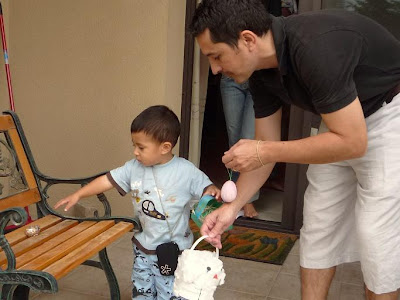 Etienne's first egg hunt and he was very calm, just like his father, collecting the coloured eggs
